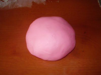 Előszőr a fondantot csináltam meg, piros étel festékkel. Egyből sikerült a kívánt, rózsaszínt eltalálnom.